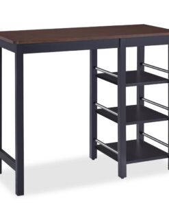De set is gemaakt van MDF en stevig rubberwood in een verfijnd, donker kleurenschema dat bijdraagt aan de koloniale uitstraling. De grote bartafel heeft 3 schappen aan een kant, waar je keukenspullen of andere dagelijkse benodigdheden op kunt plaatsen. De barkrukken hebben ruime, ergonomisch ontworpen zittingen.