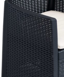 De rattan-look tuinset is gemaakt van massief kunststof, waardoor hij duurzaam, sterk en weerbestendig is. Bovendien is hij gemakkelijk schoon te maken. Zijn rattan-look voegt een vleugje natuurlijke charme toe aan je leefruimte buiten. De tuinset is ook lichtgewicht en daardoor gemakkelijk te verplaatsen. De tuintafel en stoelen zijn eenvoudig te monteren.