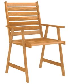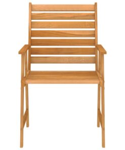 De houten tuinset is gemaakt van massief acaciahout, dat weerbestendig en duurzaam is. De olieafwerking geeft het hout een rijke, warme kleur en zorgt ervoor dat de meubels eenvoudig schoon te maken zijn met een vochtige doek.