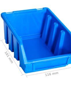 Het functionele rek met stapelbare bakken biedt veel opbergmogelijkheden voor kleine spullen, zoals schroeven, spijkers, moeren, doppen en fittingen. De 6 stevige wandpanelen bevatten 90 bakken, die gelabeld kunnen worden voor een beter overzicht van alle kleine onderdelen. Je kan de magazijnbakken afzonderlijk op elkaar stapelen. De set is uitbreidbaar en eenvoudig te monteren aan een muur. Deze opbergbakkenset kan zodanig geordend worden om aan al je behoeften te voldoen.