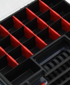 - Verstelbare verdelers: de assortimentskoffer heeft verstelbare verdelers en kan dus in meerdere vakken worden verdeeld, zodat alles een plaats heeft.