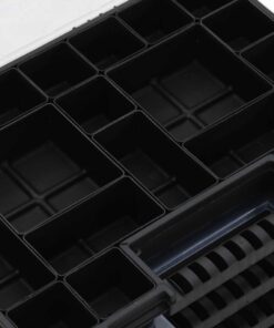 - Meerdere bakjes: de assortimentsdoos, met bakjes van verschillende afmetingen, zorgt ervoor dat alles zijn plaats vindt.