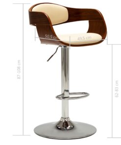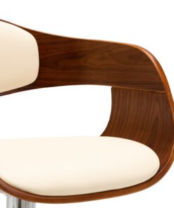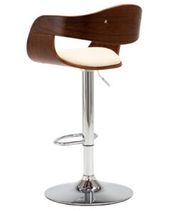 De stoel is bekleed met eenvoudig te reinigen kunstleer voor optimaal comfort. Het gebogen houten frame voegt unieke schoonheid en stijl toe. De verchroomd metalen basis zorgt voor een hoge stevigheid, terwijl de ingebouwde voetensteun extra zitplezier biedt. Het ergonomische ontwerp maakt de stoel zeer comfortabel om uren op te zitten. Dankzij het gasveermechanisme kan deze barstoel in hoogte versteld worden en is hij een perfecte aanvulling op elke bar of eethoek.