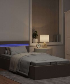 Het gepoedercoat stalen frame en de multiplex lattenbodem dragen bij aan de stevigheid en duurzaamheid van het bed. Het is bekleed met duurzame stof waardoor het bed een uitnodigende uitstraling heeft. Dit slaapkamermeubel is geschikt voor een matras van 100 x 200 cm. Bovendien kunt u met de afstandsbediening eenvoudig het vermogen, de helderheid en verschillende knipperende kleuren van de LED-lichtstrip aanpassen om een verbluffende lichtshow te creëren.