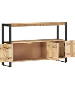 Deze kast is gemaakt van massief mangohout, een hardhout met dichte nerven. Ruw mangohout heeft niet alleen de kracht om veel gewicht te dragen, maar is ook goed bestand tegen slijtage. Daarom is deze prachtig ontworpen commode zeer stabiel, duurzaam en opvallend. Het uitmuntende vakmanschap garandeert dat elke stap van het proces met de grootste zorg wordt uitgevoerd, of het nu gaat om polijsten, schilderen of lakken. Het gepoedercoat stalen frame draagt bij aan de industriële stijl en stevigheid van de bijzetkast. Bovendien beschikt dit meubelstuk over 2 kastjes met 3 deuren en 1 vak, waardoor er voldoende ruimte is voor het opbergen van je multimedia-apparaten, kleding, boeken en diverse andere spullen.