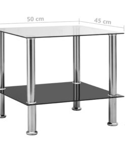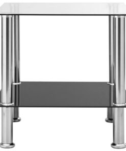 Dit tafeltje heeft een gehard glazen blad en wordt ondersteund door roestvrijstalen poten, waardoor het buitengewoon stevig en stabiel is. De glazen tafel is gemakkelijk schoon te maken met een vochtige doek. Het onderschap biedt je extra opbergruimte.