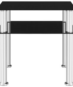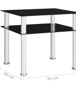 Dit tafeltje heeft een gehard glazen blad en wordt ondersteund door roestvrijstalen poten, waardoor het buitengewoon stevig en stabiel is. De glazen tafel is gemakkelijk schoon te maken met een vochtige doek. Het onderschap biedt je extra opbergruimte.