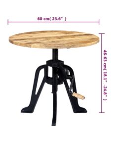 Deze bijzettafel is gemaakt van massief mangohout, waardoor hij buitengewoon stabiel en duurzaam is. Mangohout is een dicht en robuust hardhout met prachtige bruine of gouden strepen en contouren op het oppervlak. Elke stap van het proces wordt met de grootste zorg uitgevoerd, of het nu gaat om polijsten, schilderen of lakken. De gietijzeren basis draagt bij aan de stabiliteit en stevigheid van de tafel. Bovendien is de houten tafel in hoogte verstelbaar van 46 cm tot 63 cm, zodat hij voor meerdere doeleinden gebruikt kan worden.