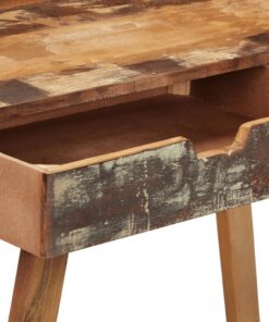 Dit houten bureau in vintage stijl, gemaakt van massief gerecycled hout, is een tijdloze aanvulling op je huis. Het blad biedt een stabiele en stevige plek voor je drankjes, fruitschaal, vaas en andere decoratieve objecten. Het heeft 2 lades die voldoende ruimte bieden om kleinere objecten, zoals sleutels, notitieblokken en andere dingetjes, in op te bergen. Het bureau kan gebruikt worden als computertafel, werktafel, kantoorbureau, leestafel, studeertafel, enz.