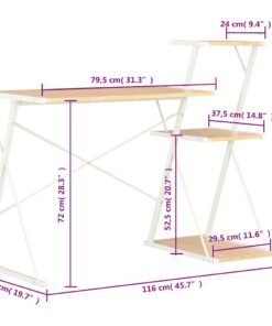 vidaXL Bureau met schap 116x50x93 cm wit en eikenkleurig