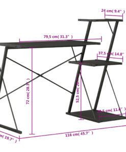 Dit moderne bureau heeft een schap waardoor het een zeer praktisch, handig en veelzijdig meubelstuk is voor gebruik thuis en op kantoor.