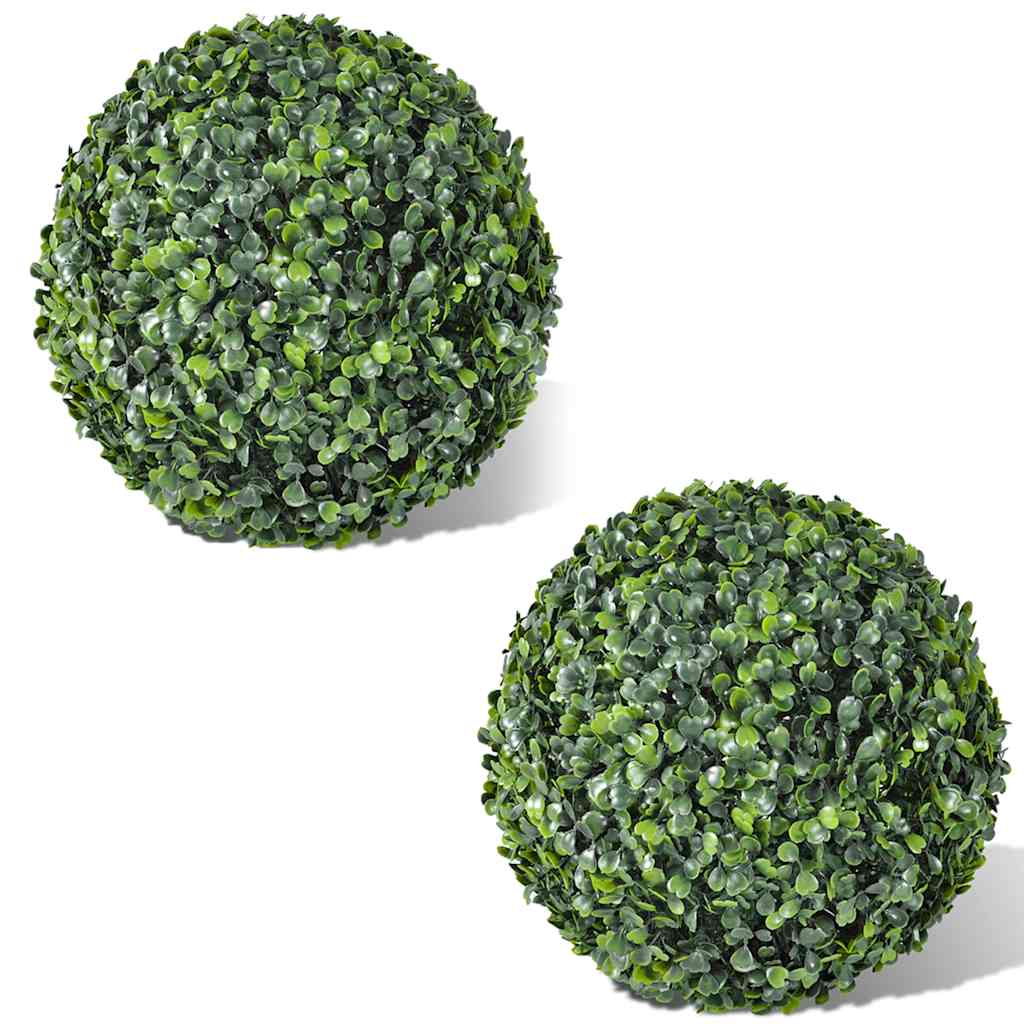 Deze set van 2 kunstbuxusbollen, elk met een diameter van 35 cm, is perfect voor zowel binnen- als buitengebruik. De bollen kunnen in potten of plantenbakken worden geplaatst of aan een ketting worden opgehangen. Je kunt de bollen ook versieren met kerstlichtjes om je interieur op te fleuren of je tuinlandschap te verbeteren.