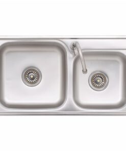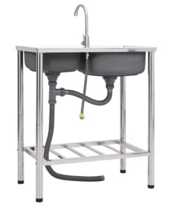 Deze campingspoelbak heeft 2 wasbakken met een afvoer en een kraan. Hij is een perfecte keuze voor buitengebruik.