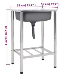 Deze campingspoelbak heeft een grote wasbak met een afvoer, wat een perfecte keuze is voor buitengebruik.