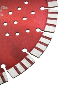 Met een turbosegment en gaten is deze diamantschijf, gemonteerd op tafelzagen, doorslijpmachines en slijpmachines, geschikt voor het zagen van beton, graniet, baksteen en andere industriële toepassingen en voor handwerk, zoals bewerking van porselein en steen.