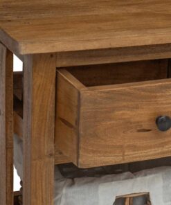 Dit dressoir voegt een vleugje rustieke charme toe aan je interieur. Het is gemaakt van massief gerecycled hout en de slijtplekken geven elk meubel een unieke uitstraling en dragen bij aan de spectaculaire vintage stijl. Het meubel heeft 3 lades en 3 verwijderbare rattan manden.