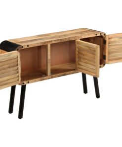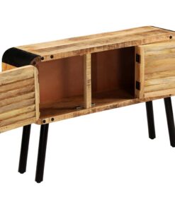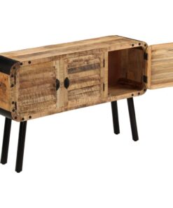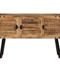 De zijkast is gemaakt van massief mangohout dat gepolijst en gelakt is, maar toch zijn natuurlijke kleur en een ruwe uitstraling heeft behouden. De prachtige houtnerven maken elk meubel uniek en enigszins anders dan de rest. Het dressoir heeft een stevig en stabiel oppervlak waarop je fruitmanden, vazen en andere decoratieve voorwerpen kunt plaatsen. Daarnaast heeft het meubel een grote kast met 3 deuren voor extra opbergruimte. De metalen elementen dragen bij aan de industriële stijl van het dressoir. Montage is eenvoudig.