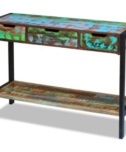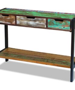 Dit houten dressoir in vintage stijl is gemaakt van massief gerecycled hout, en vormt een tijdloze aanvulling op je woning. Dankzij het sterke stalen frame is het dressoir zeer stevig en duurzaam. Het bovenblad biedt een stabiel en veilig oppervlak voor je drankjes, fruitschaal, vaas en andere decoratieve objecten. De kast heeft 3 lades die voldoende ruimte bieden om kleinere objecten, zoals sleutels en notitieblokken, in op te bergen. Het schap onderaan biedt extra ruimte om spullen op te plaatsen. Het kastje kan ook gebruikt worden als wandkast of bijzetkast.