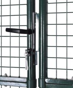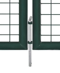 De poort is gemaakt van stevig staal en heeft een stevige constructie en is gepoedercoat tegen roest en corrosie. Deze poort heeft twee stevige palen met stevige scharnieren voor eenvoudige installatie en een robuust vergrendelingssysteem met drie bijpassende sleutels is ook bij de levering inbegrepen.