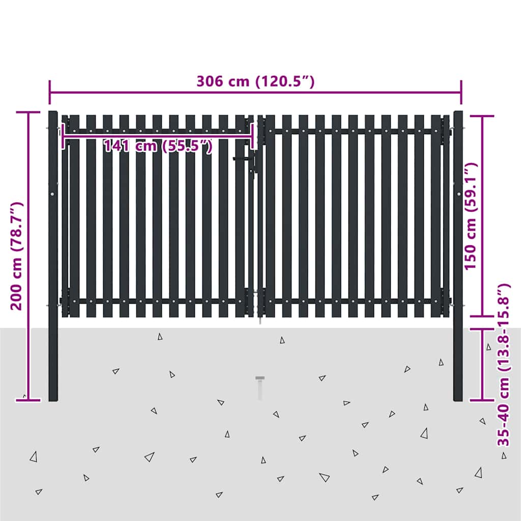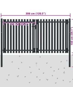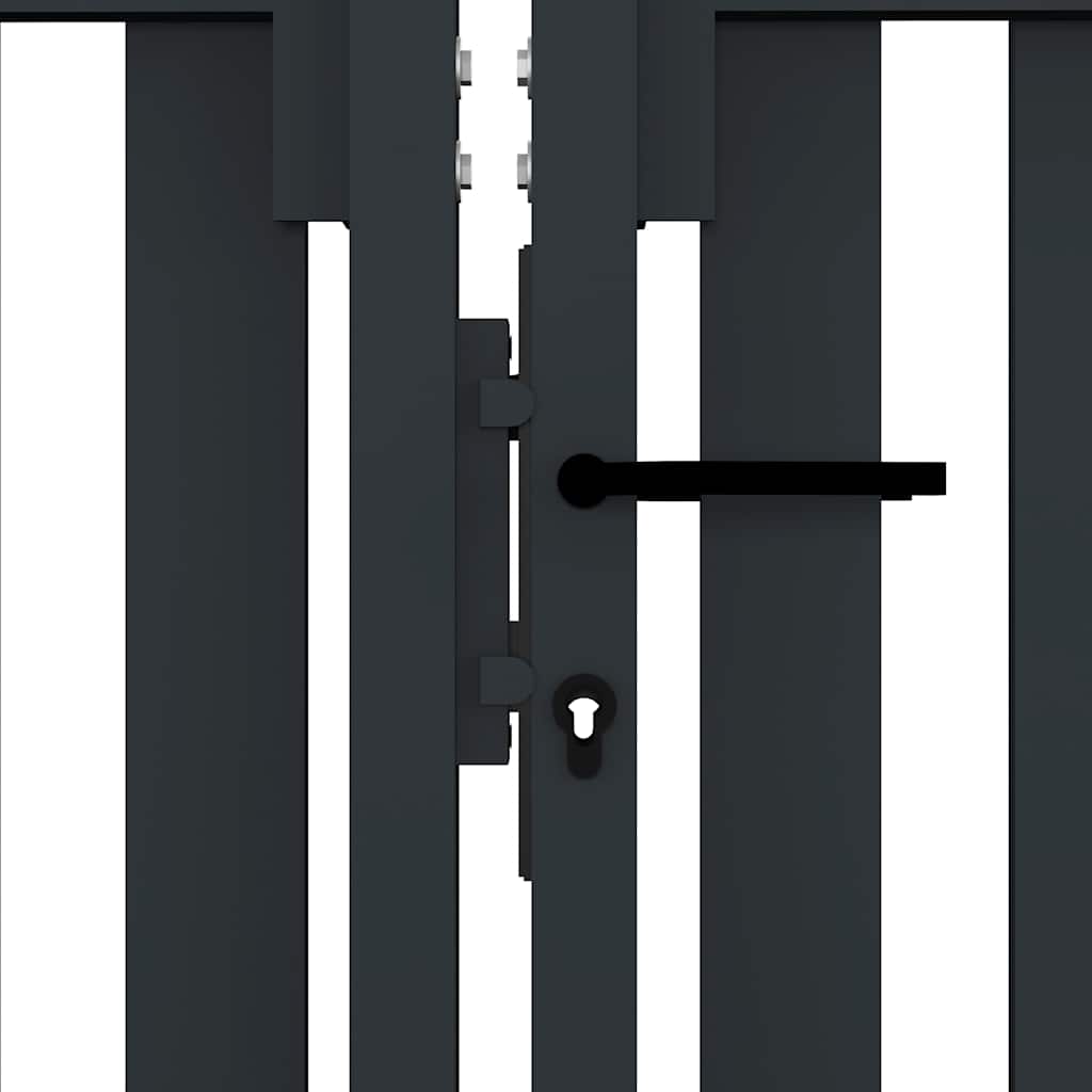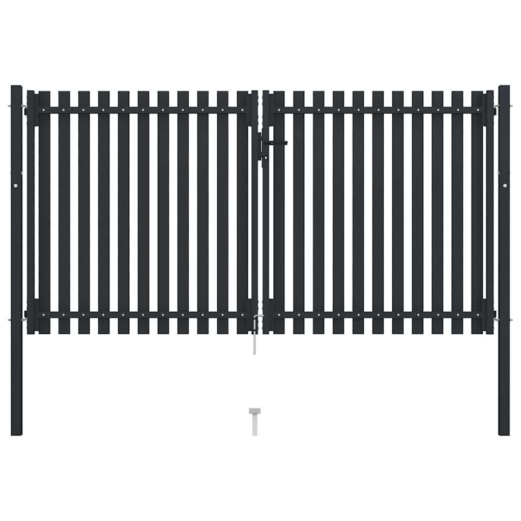Deze poort met dubbele deur is een moderne afscheiding tussen je tuin en de buitenwereld.