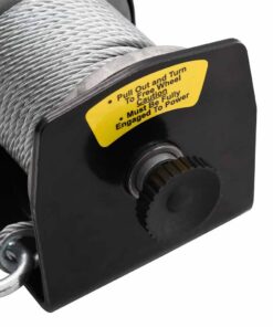 Deze elektrische lier is speciaal ontworpen voor het afslepen van voertuigen. De vrijloop koppeling wordt bediend door een trek-en-draai knop die de transmissie ontkoppelt om de kabel te laten vieren zonder stroom. De lier beschikt over een spanningsplaat die de terugslag vermindert wanneer er aan het touw getrokken wordt.