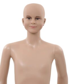 Deze kind-etalagepop met glazen voet kan worden gebruikt om kleding, pruiken en schoenen in etalages te presenteren.