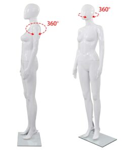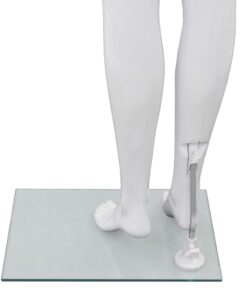De mannequin bestaat uit 5 delen: hoofd, romp, benen, linkerarm en rechterarm. Het hoofd en de armen kunnen 360° worden gedraaid, waardoor je de etalagepop in verschillende posities kunt plaatsen. Het lichaam is gemaakt van polypropyleen wat licht is in gewicht en duurzaam. De glazen voet met aluminium standaard zorgt voor stabiliteit en dat het model schoenen kan dragen.