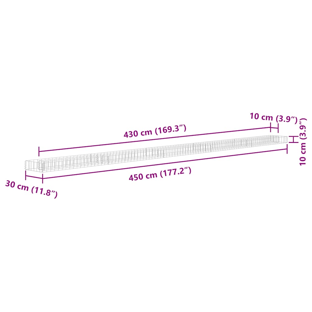 vidaXL Gabion plantenbak verhoogd 450x30x10 cm gegalvaniseerd staal