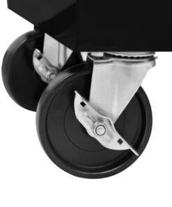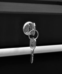 Dankzij het geïntegreerde slot kunnen alle lades tegelijkertijd worden vergrendeld, waardoor voorkomen wordt dat ze per ongeluk kunnen openen wanneer de trolley wordt verplaatst. Twee van de zwenkwielen hebben remmen. De robuuste bovenkant van de wagen is een geweldige plek om gereedschap binnen handbereik te houden. Er zit ook een handig handvat aan de zijkant om de gereedschapswagen te kunnen duwen.