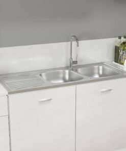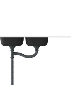 Deze keukengootsteen met dubbele wasbakken en afvoerset is een tijdloze aanvulling op je bestaande keukeninrichting.