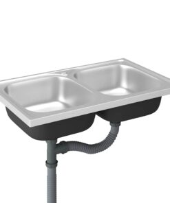 Deze gootsteen met dubbele wastafels en een afdruiprek is een ideale aanvulling op je bestaande keukeninrichting.