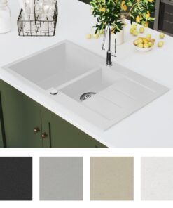 Het hoogwaardige graniet maakt de gootsteen zeer hittebestendig, kras- en slagvast en gemakkelijk schoon te maken. Hij is volledig omkeerbaar, wat betekent dat de spoelbak zowel links- als rechtsom gemonteerd kan worden. Een zeefje is ook inbegrepen voor eenvoudige verwijdering van vuil.