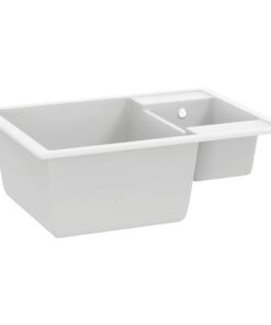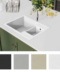 De wastafel is gemaakt van graniet waardoor hij hittebestendig, kras- en slagvast en gemakkelijk schoon te maken is. Een zeefje is ook inbegrepen voor eenvoudige verwijdering van vuil. Het afvoergat heeft een diameter van 90 mm.