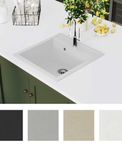 Het hoogwaardige graniet maakt de gootsteen zeer hittebestendig, kras- en slagvast en gemakkelijk schoon te maken. Een zeefje is ook inbegrepen voor eenvoudige verwijdering van vuil.