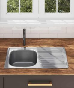 Deze hoogwaardige gootsteen heeft een grote spoelbak met aan de zijkant een verlengd uitlekblad. De gootsteen wordt geleverd inclusief afvoer en zwanenhals en is een geweldige keuze voor je keuken.