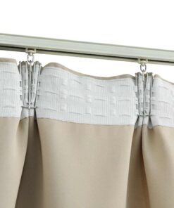 Het gordijn heeft een simpel, tijdloos ontwerp. Dankzij de metalen haken kunnen de gordijnen eenvoudig aan gordijnrails opgehangen worden. De gordijnen zijn gemaakt van premium polyester en kunnen in de wasmachine worden gewassen.