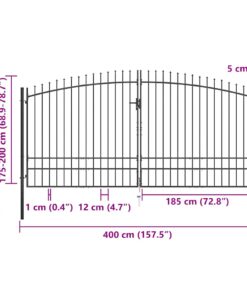 De verticale staven zijn voorzien van speerpunten en het sterke horizontale frame biedt extra stevigheid. Onze tuinpoort zorgt voor een hoge mate van privacy en veiligheid terwijl hij ook een stijlvolle ingang tot je terrein is. De poort is gemaakt van stevig staal en is gepoedercoat om hem te beschermen tegen roest en corrosie.