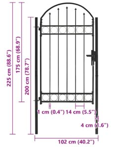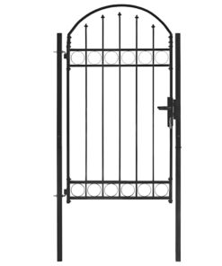 vidaXL Hekpoort met gebogen bovenkant staal 104×175 cm zwart
