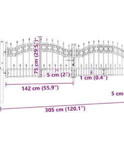vidaXL Hekpoort met speerpunt zwart 305×75 cm gepoedercoat staal