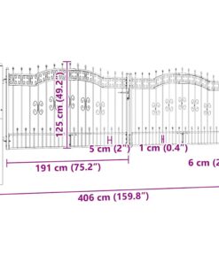 vidaXL Hekpoort met speerpunt zwart 406×125 cm gepoedercoat staal