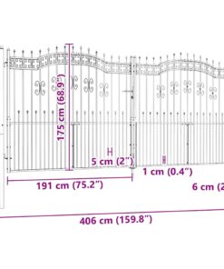 vidaXL Hekpoort met speerpunt zwart 406×175 cm gepoedercoat staal