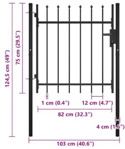 Met zijn elegante speer ontwerp en een sterke horizontale beugel om het frame te versterken, biedt onze tuinpoort veiligheid, terwijl hij tegelijkertijd een fantastische toegangspoort tot je terrein vormt. De poort is gemaakt van sterk gepoedercoat staal dat roest- en uv-bestendig is.