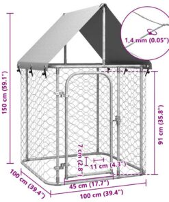 Deze grote hondenkennel biedt voldoende ruimte om te bewegen, terwijl het gaas rondom ongelukken helpt voorkomen en voor voldoende ventilatie zorgt. Dankzij de stevige en robuuste gegalvaniseerd stalen constructie is deze hoogwaardige hondenkennel zeer duurzaam. Het inbegrepen dak is gemaakt van 100% polyetheen en is vuurbestendig en uv-beschermend. Het biedt bescherming tegen zon, regen, sneeuw en andere weersomstandigheden. De scharnierdeur met afsluitbaar vergrendelingssysteem biedt je honden extra veiligheid.
