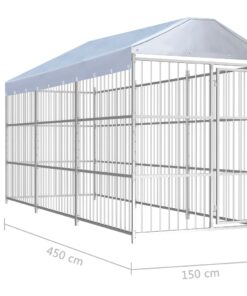Deze hondenkennel biedt voldoende bewegingsruimte, terwijl de stalen spijlenwanden kattenkwaad en onverwachte ongelukjes helpen voorkomen en zo voor een goede ventilatie zorgen. Dankzij de stevige en robuuste stalen constructie is deze hoogwaardige hondenkennel buitengewoon duurzaam en gaat hij lang mee. De meegeleverde luifel is gemaakt van 100% polyethyleen en is weerbestendig, wat zorgt voor goede bescherming tegen zon en regen. Bovendien is de scharnierende deur voorzien van een afsluitbaar vergrendelingssysteem voor extra veiligheid en beveiliging van je honden.