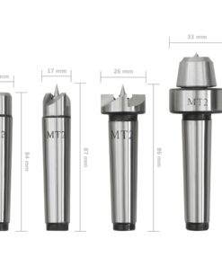 Deze MT2 draaibankcenterset is alles wat je nodig hebt om op je houtdraaibank te spindeldraaien. De set bevat een spooraandrijver, een spoorcenter, een komvormig center en een center voor soepel wrijvingsvrij draaien.
