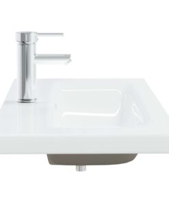 De gootsteen dient niet alleen als product voor dagelijks gebruik, maar hij is ook een versiering voor je leefruimte. Dankzij zijn trendy en eigentijdse ontwerp past deze wastafel in elk interieur. De wastafel is gemaakt van keramiek en is dus zeer eenvoudig schoon te maken. Een overloop zorgt ervoor dat er water uit het basin stroomt als deze te vol dreigt te raken. Het geglazuurde oppervlak geeft de wasbak een modern en elegant tintje. Een kraan en pop-up afvoer met overloopfunctie zijn inbegrepen.
