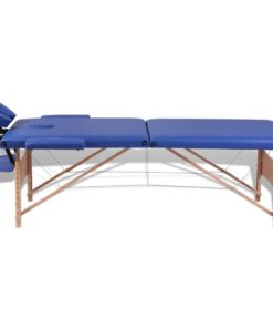 vidaXL Inklapbare massagetafel 2 zones met houten frame (blauw) - Image 3