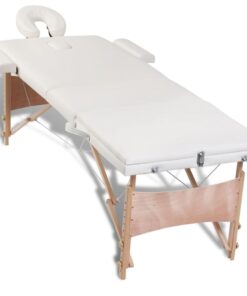 vidaXL Inklapbare massagetafel 3 zones met houten frame (creme)
