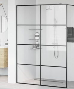 De douchewand is voorzien van 5 mm dik ESG-glas dat wordt ondersteund door een aluminium frame, zodat je er zeker van kunt zijn dat de structuur na montage zeer sterk is. Het verstelbare profiel zorgt ervoor dat het scherm gemakkelijk in elke badkamer past; ongeacht grootte en indeling. Veeg en droog uw douchecabine af met een zachte, droge handdoek na gebruik. Gebruik glasreiniger. Gebruik een papieren handdoek om de glasreiniger in de bespoten gebieden te wrijven en maak het doucheglas droog.