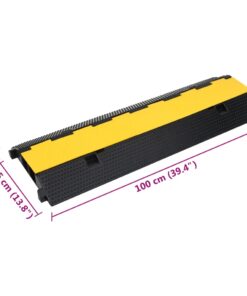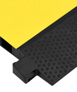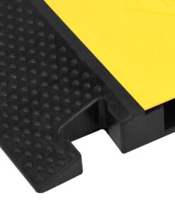 De helling is gemaakt van rubber, dat lichtgewicht, slijtvast en duurzaam is. De helling is felgeel gekleurd en heeft waarschuwingssymbolen op het oppervlak om hem beter zichtbaar te maken. Hij heeft 2 kanalen om uw kabels te geleiden en te beschermen en is bestand tegen een kortstondige belasting van maximaal 2,5 ton. De kabels kunnen eenvoudig worden geplaatst of verwijderd door de bovenklep omhoog te klappen. Dankzij het modulaire ontwerp kunnen meerdere hellingen worden gekoppeld om langere kabels te kunnen verwerken.
